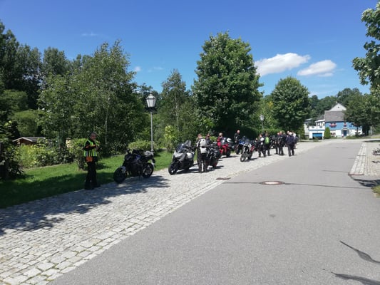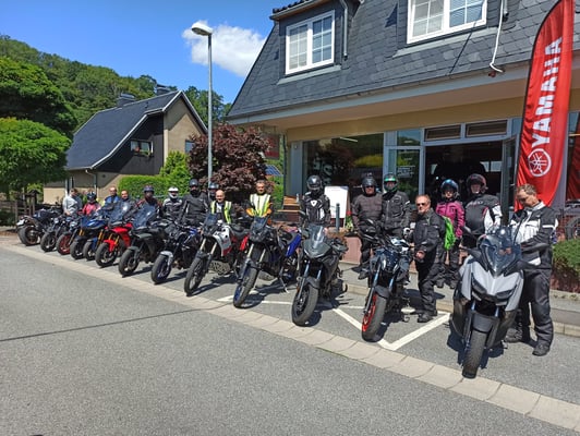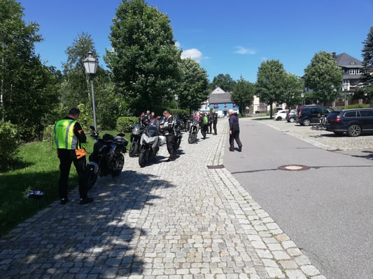 Unsere 3. Genießertour über insgesamt 350km fand erstmal am Wochenende statt. Ziel war der Bikertreffpunkt Fichtelberg, der mit 12146m höchste Berg in Sachsen. Bei idealem Motorradwetter (23 Grad und Sonnenschein) starteten 11 Yamaha Vorführbikes zur Tour. Dabei waren natürlich der Allroundtourer Niken 900 sowie u.a. die Neuheiten MT-07, MT-09, Tracer 9 und Tracer 9GT sowie 2 Ténéré 700. Die geführte Tour führte uns über Schmiedeberg, Holzhau, Neuhausen, Olbernau, Jöhstadt zum Ziel. Nach der ausgiebigen Kaffeepause ging es über Chomutov (Tschechien) auf einer kurvenreichen Strecke Richtung Heimat. Nach einer Fotopause an der Fláye-Talsperre konnten wir auf den letzten "Metern" noch den Sonnenuntergang bei Maxen genießen. Genießertour eben!