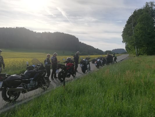 Unsere 5. Auflage der Eisdielenrunde führte uns ins Eiscafe Reinholz nach Dürrröhrsdorf. Bei bestem Bikerwetter ging es weiter über Hohnstein, Sebnitz nach Hinterhermsdorf. Hier machten wir eine kurze Pause mit Blick auf den Weifenberg. Die Rückfahrt ging durch das malerische Kirnitzschtal, Bad Schandau, Krippen über das Hochplateau Gohrisch am Rande des Nationalparks zurück in die Weltstadt Dohna. Schön war's.