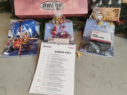Ab sofort liegen für unsere Stammkunden die limitierten Kalender mit all unseren Events und Veranstaltungen für die kommende Motorrad- und Rollersaison bereit. Dazu gibt es natürlich auch wieder schicke Weihnachtsgeschenke mit Kalender verpackt.