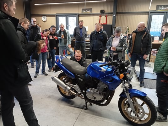 Großen Anklang unsere 3. Auflage des Schrauber- und Pannenhilfe Seminars. Unser Werkstattmeister Thomas (vertritt als Sieger des nationen Yamaha Mechaniker Wettbewerbes im März Yamaha Deutschland beim Europafinale in Amsterdam) zeigte wie man ein umgefallenes Bike alleine aufrichtet oder wie man bei einer Reifenpanne mit Reparatur-Set oder Reifenspray sich helfen kann. Mehr wird hier nicht verraten... denn nächstes gibt es eine Fortsetzung!