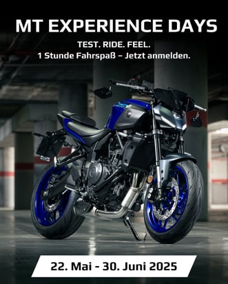 Bei den MT EXPERIENCE DAYS bieten wir dir die exklusive Möglichkeit, unsere MT-Modelle 60 Minuten lang unverbindlich zu testen – und zwar so, wie du sie später im echten Leben fahren würdest. Ob mit klassischem Schaltgetriebe oder als innovative Y-AMT-Version: Du entscheidest selbst, was besser zu dir passt.