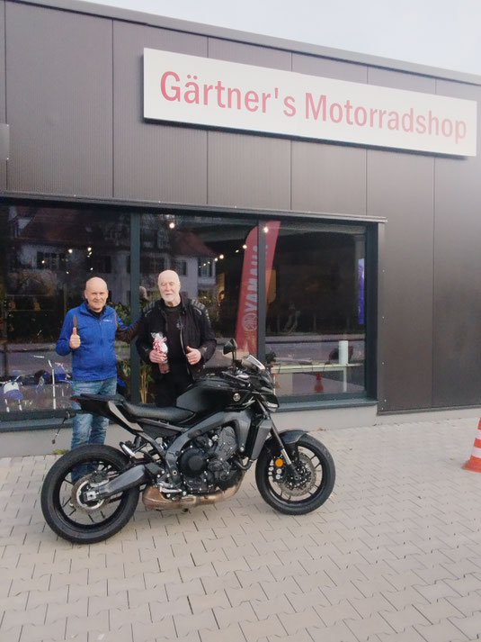 Herzlichen Glückwunsch an unseren langjährigen Tourguide Roland zur neuen MT-09 Y-AMT. Es freut uns sehr, das Roland als "alten Hasen" mit über 350.00km (!) Motorraderfahrung das neue automatisierte Schaltgetriebe (Y-AMT) so überzeugt hat. Lieber Roland wir wünschen Dir viel Freude mit der MT-09 sowie allzeit gute Fahrt und schöne erlebnisreiche Touren.